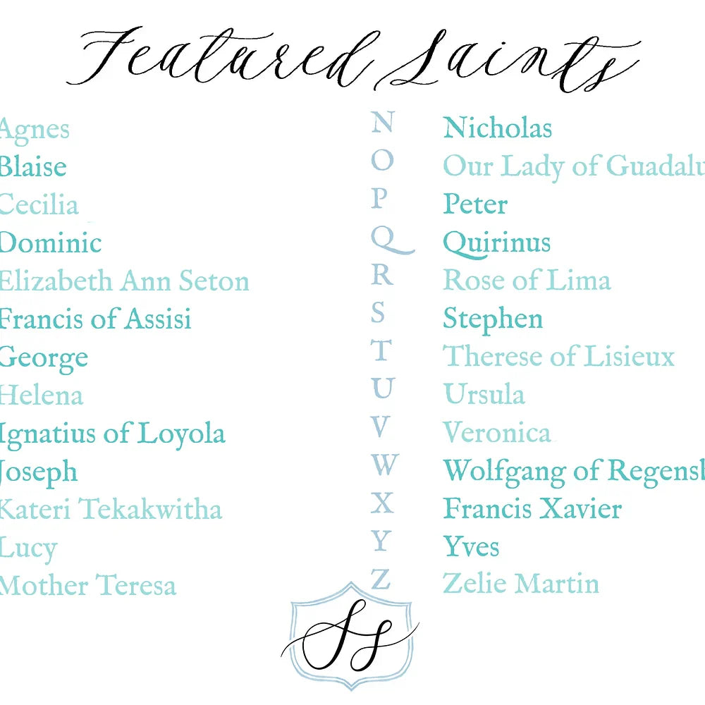 - Includes 'Featured Saints' card with purchase (5"x 7")