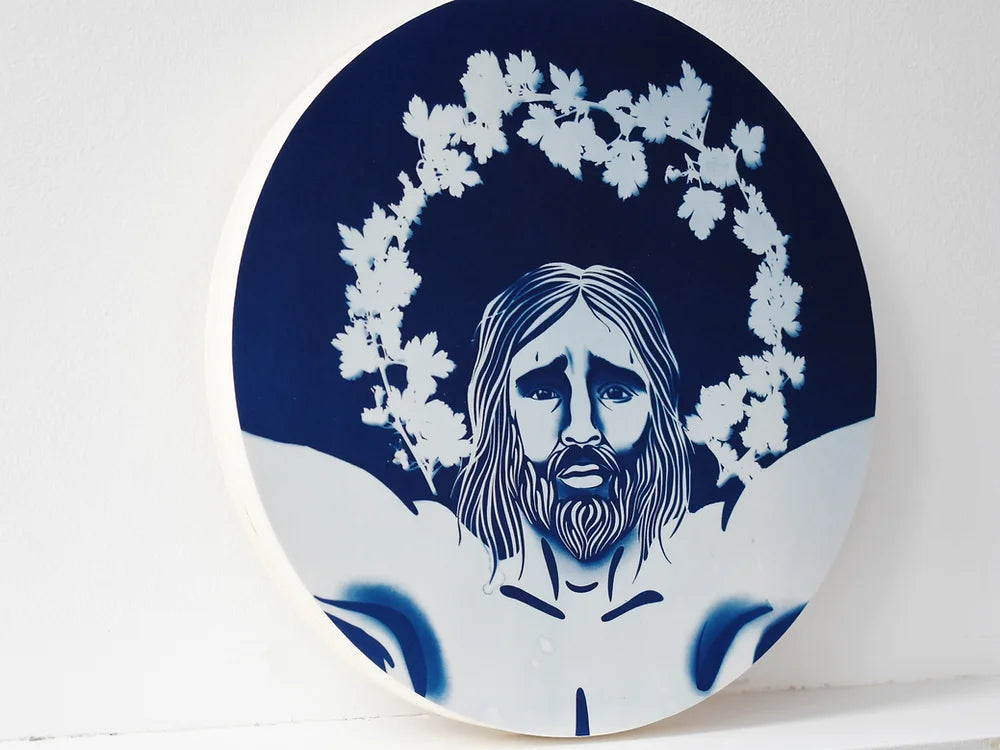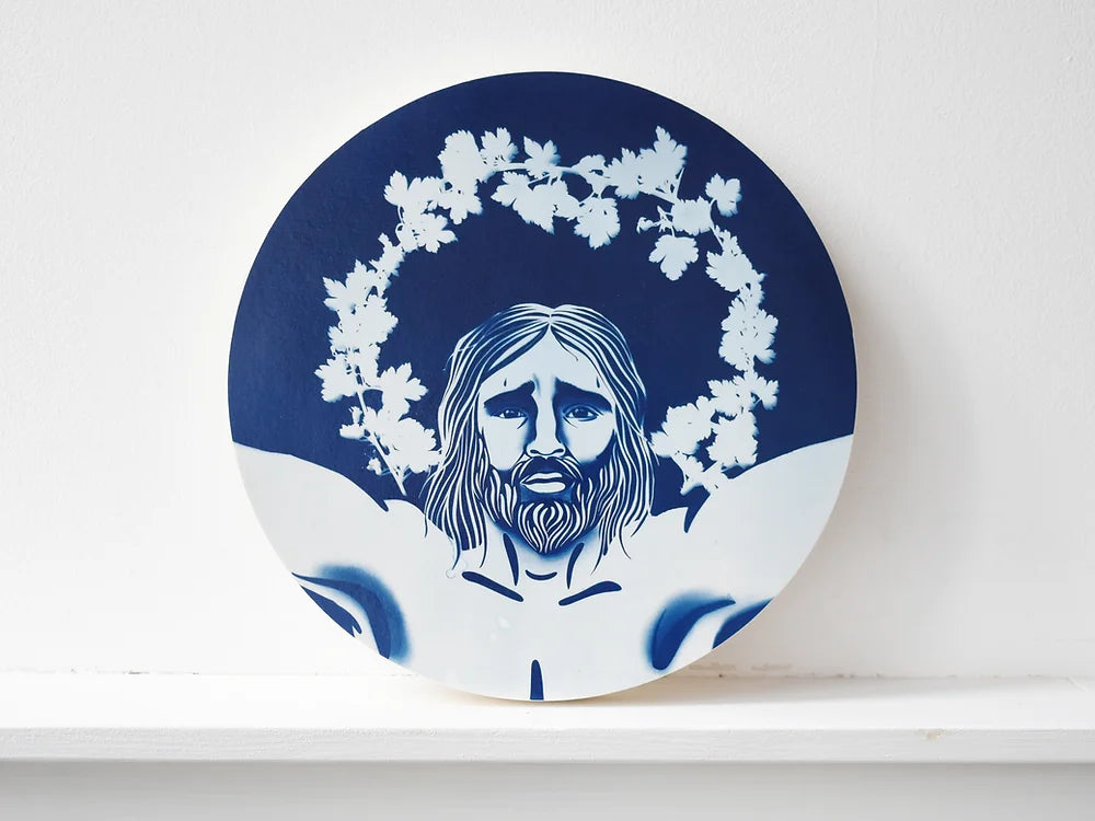 Made using a process called cyanotype. Cyanotype is a photographic printing process that produces a cyan-blue print. Engineers used the process well into the 20th century as a simple way to produce copies of drawings known as blueprints. The process uses two chemicals, ferric ammonium citrate and potassium ferricyanide, the sun and a lot of patience mingled with grace. Each piece is unique and perfect in its imperfection. No two colors are exactly the same based on the amount of sun exposure and brightness at the time. Lines, gradient and water spots may be present and are all part of this unique process.