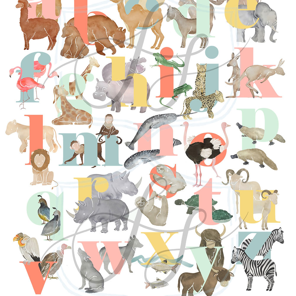 Next to each letter is a pair of the same animal (that starts with that letter). The bottom of the Poster reads "All Creatures Great and Small, the Lord God made them all."