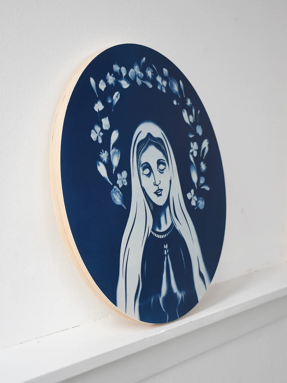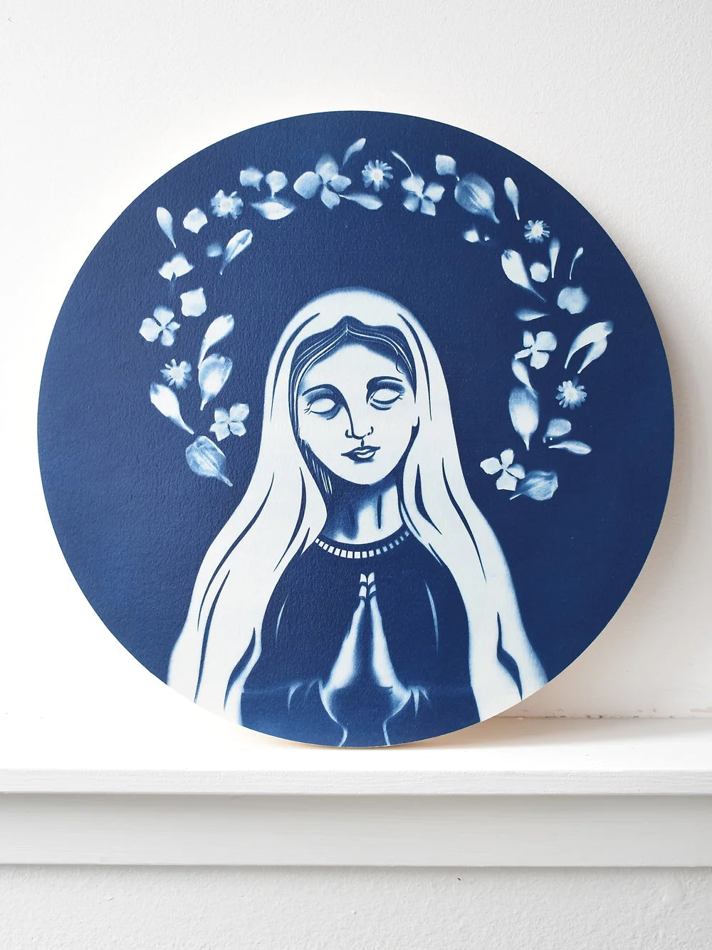 Made using a process called cyanotype. Cyanotype is a photographic printing process that produces a cyan-blue print. Engineers used the process well into the 20th century as a simple way to produce copies of drawings known as blueprints. The process uses two chemicals, ferric ammonium citrate and potassium ferricyanide, the sun and a lot of patience mingled with grace. Each piece is unique and perfect in its imperfection. No two colors are exactly the same based on the amount of sun exposure and brightness at the time. Lines, gradient and water spots may be present and are all part of this unique process.